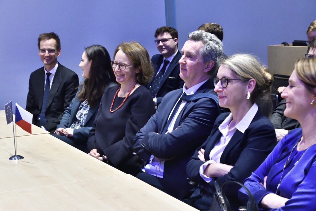 The European Commission delegation, composed of representatives of SG REFORM as well as senior officials from the Directorate-General for Economic and Financial Affairs (DG ECFIN), accompanied by representatives of the Czech Ministry of Industry and Trade, was first welcomed by CTU Rector Prof. Michal Pěchouček and Vice-Rector for International and Governmental Affairs Prof. Ladislav Krištoufek.
