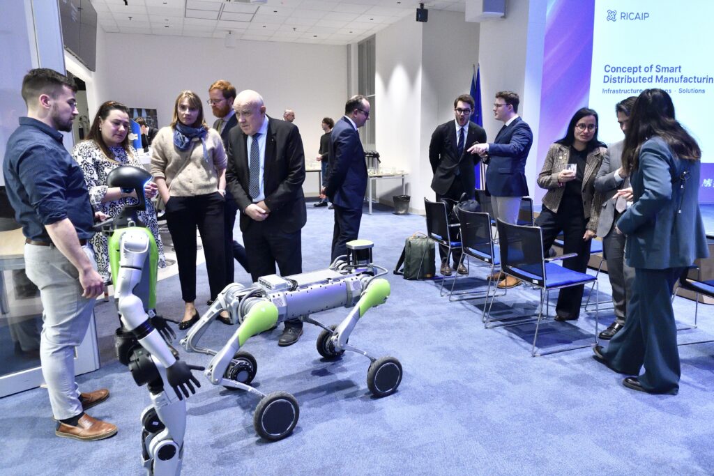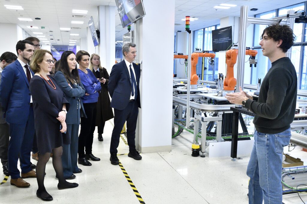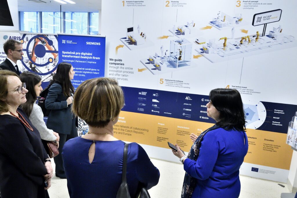 Digitalisation of industry and the rapid development of artificial intelligence were among the main topics of the European Commission’s visit to CTU, led by Céline Gauer, Director-General of the Commission’s Task Force for Reforms and Investments (SG REFORM). Autonomous robotic lawn mowers with advanced AI, capable of independently mapping terrain, and digital twins of industrial production lines that automatically generate manufacturing sequences are just a few examples of innovations developed at one of the most advanced Industry 4.0 laboratories in Central and Eastern Europe – the RICAIP Testbed at CIIRC CTU in Prague, where university representatives welcomed the the delegation from the European Commission.