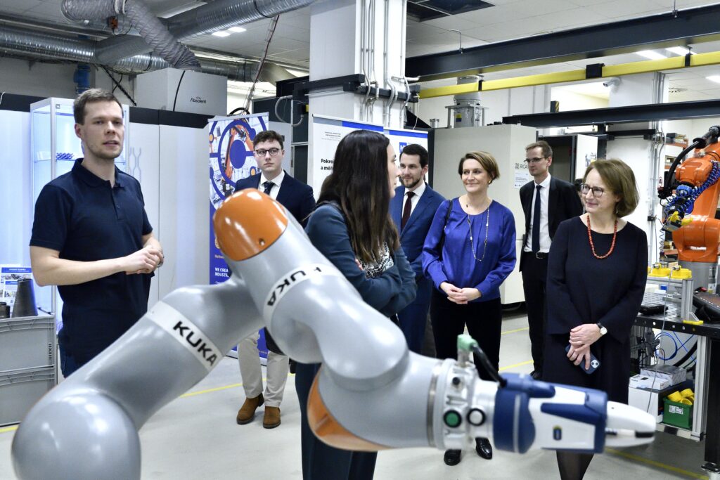 Céline Gauer, Director-General of the Commission’s Task Force for Reforms and Investments (SG REFORM), and her colleagues were primarily interested in the status of projects supported by the National Recovery Plan, specifically EDIH CTU and AI-MATTERS/TEF. Discussions also focused on support for digitalisation, the expansion of artificial intelligence and the continued strengthening of Europe’s technological independence. “It is great to see, through practical examples, what can be achieved by connecting cutting-edge scientific research, a strong university environment and the entrepreneurial spirit of the industrial sector. CTU is one of the examples of effective use of European support on the path towards digitalisation and technological excellence in the European Union,” said Céline Gauer during her visit to CTU.
