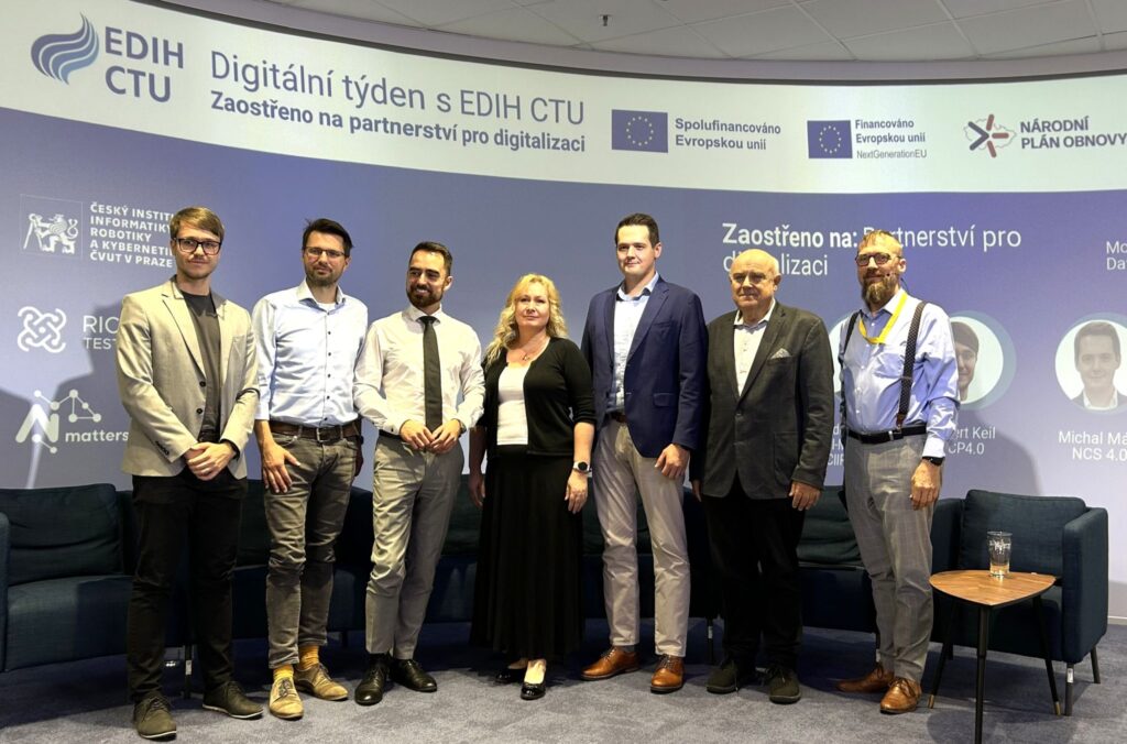 Ondrej Beranek (AI Matters EU) and David Pešek (EDIH CTU) proudly represented CTU CIIRC at Fenomén Zlín conference on the Innovation Stage, sponsored by AIMATTERS and EDIHCTU, showcasing our RICAIP testbed ecosystem.
